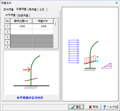 [荷重条件]ダイアログで「外側→内側」「内側→外側」を選択いただきますと入力画面右側にガイド図が表示されます。
