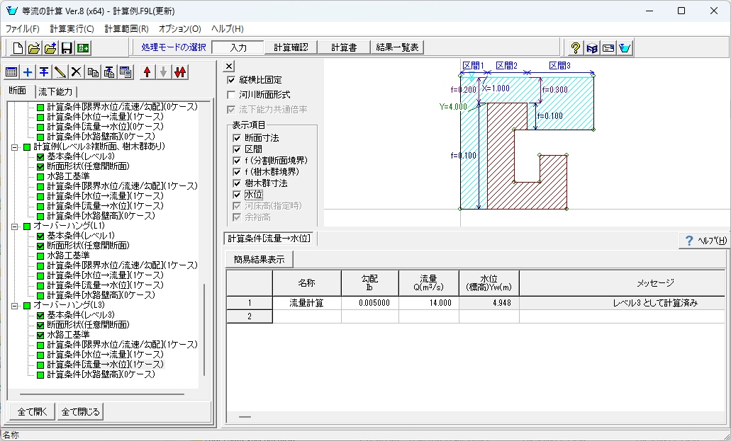 レベル1,1a,2,2a,3の等流計算