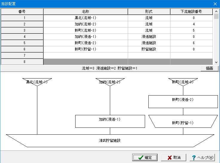 但し、この状態(他の流域データが設置されていない状態)で貯留計算を行うと貯留施設の流入量が0となり、正しい貯留施設の計算が行われない可能性がございますので注意が必要となります。