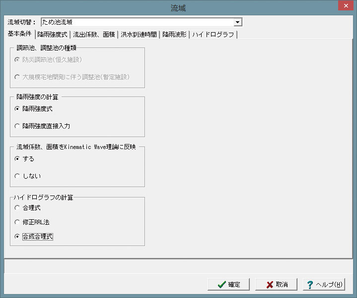 流出ハイドログラフの計算は、合理式か、修正RRL法のいずれかについて指定可能です。