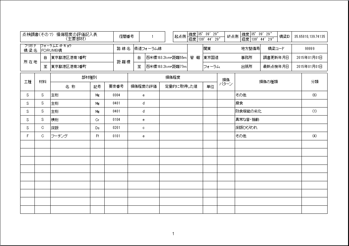 (1)橋梁の諸元と総合検査結果 f8ppfよりファイル出力、word(doc)