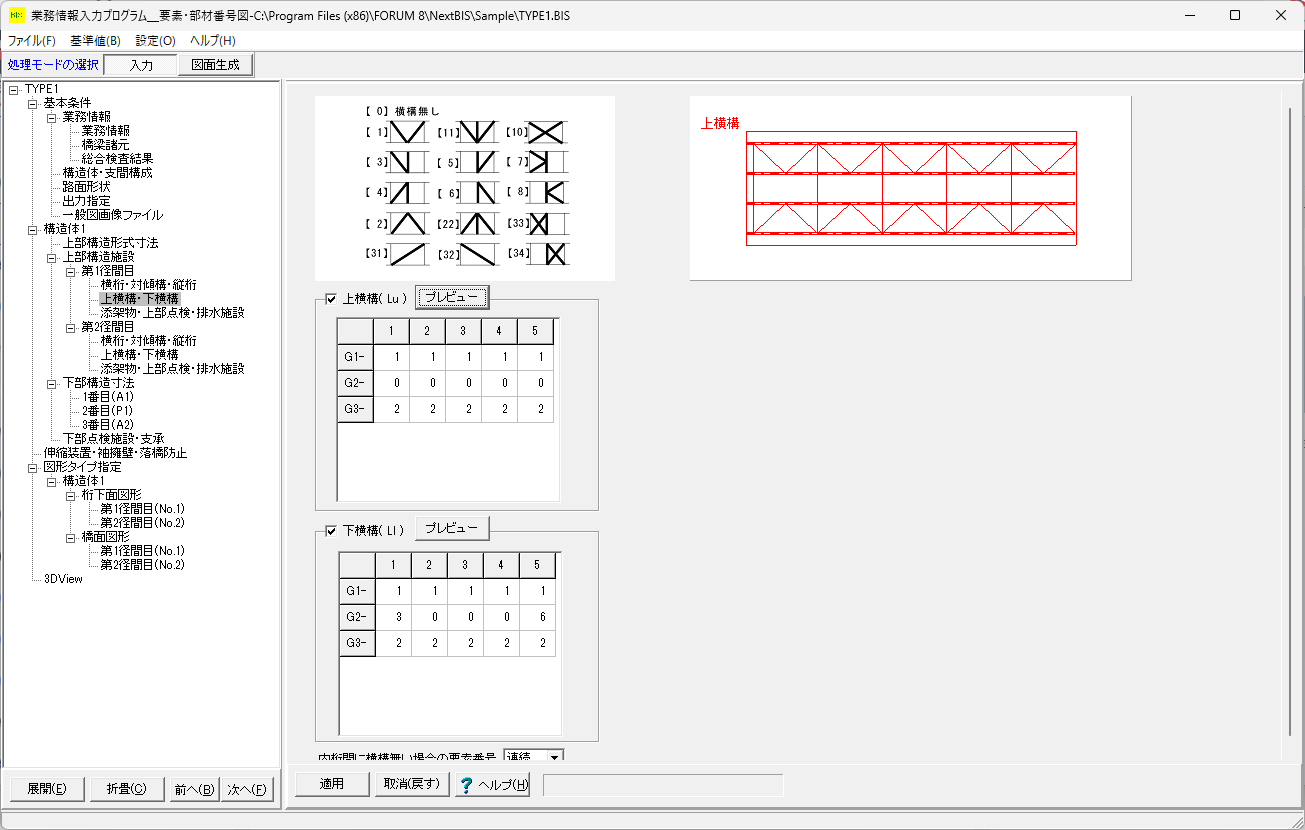 桁連結、桁間連結、桁間ブロックを想定していて、配置は主桁本数により桁ごと、または桁間ごとに指定可能です。