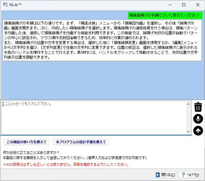 | ファイル出力 | UC-Drawデータ F8出力編集ツール対応:TXT、HTM、 PPF、DOC、 DOCX、PDF、 JTD、JTDC |