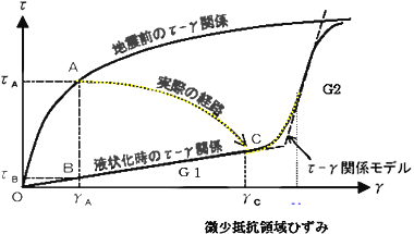 せん断ひずみが、微小抵抗領域ひずみ(γL)を超過した場合は、せん断弾性係数をG2に補正します。