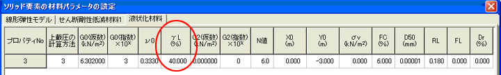 GeoFEAS2Dでは微少抵抗領域ひずみを入力するか、プログラム内部で自動計算するか切り替えることができます。微少抵抗領域ひずみは、バイリニアの応力ひずみ関係において液状化時のせん断剛性G1(液状化時のτ-γ関係の傾き)が、回復剛性G2に変化する境界となるひずみを意味します。この値の設定によって実際に計算に用いるせん断剛性が変わってきます。
