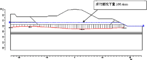 GeoFEAS2D : 液状化時天端沈下量 + 体積圧縮 = 119.0cm