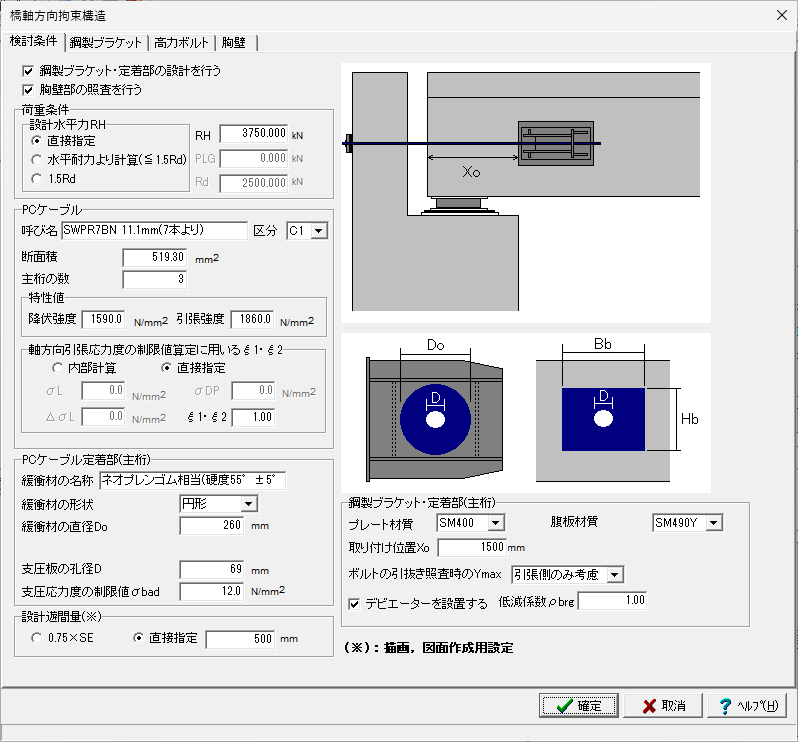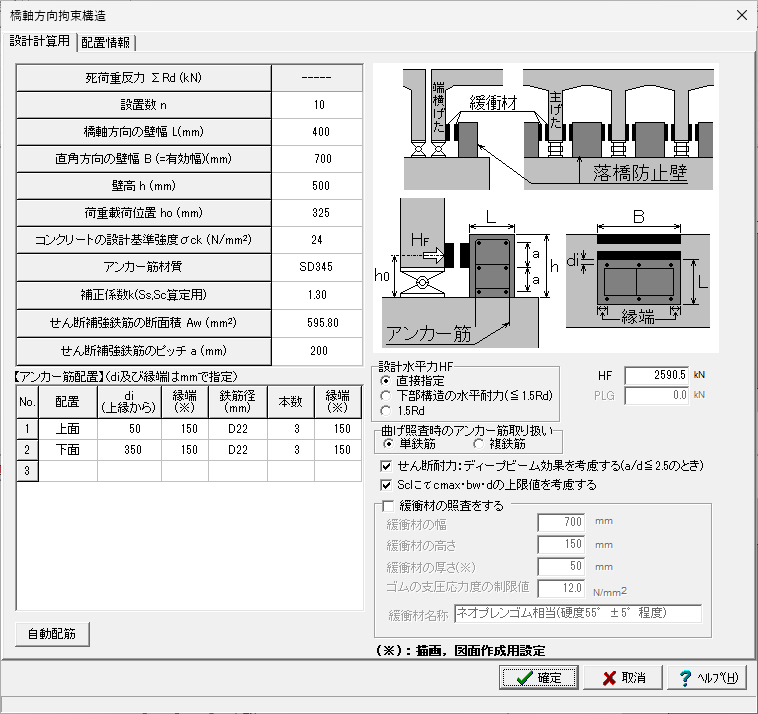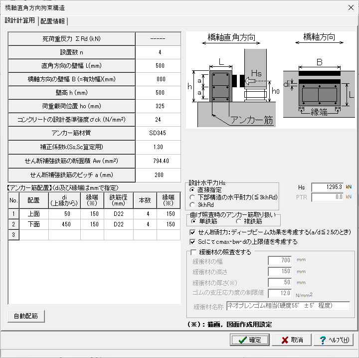 ◦アンカーバーの照査に対応しています。橋軸方向および直角方向についての検討が可能です。