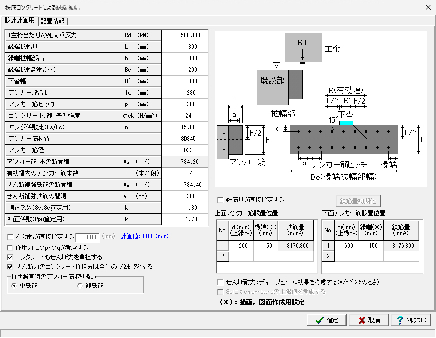 ◦鋼製ブラケットによる縁端拡幅の照査に対応しています。