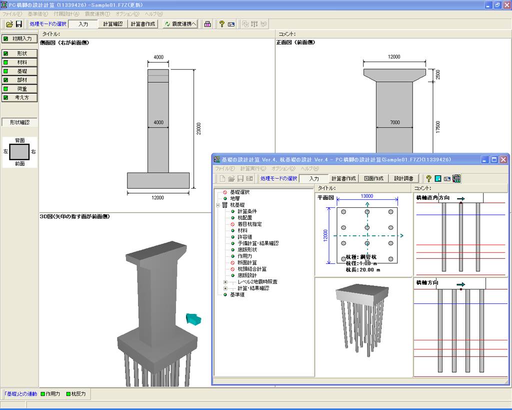 UC-1「基礎の設計」、「深礎フレームの設計」、「震度算出(支承設計)」との連動設計に対応。