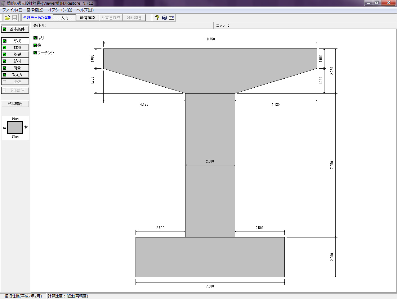 「橋脚の復元設計計算」は、旧基準に従った橋脚柱の保有水平耐力法に特化した設計計算プログラムです。