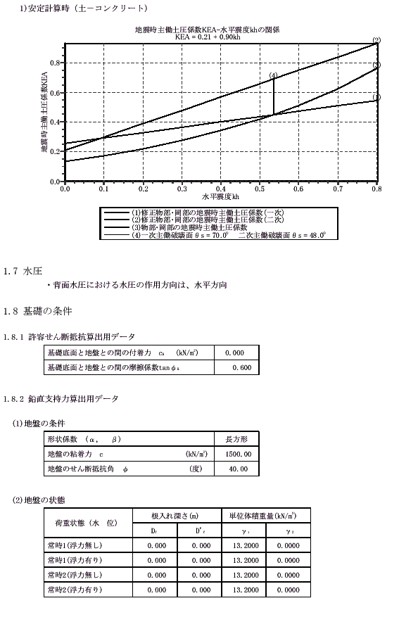 | 背面水圧の方向 | δ=0.0(水平方向) | |