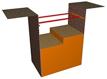 『土留め工の設計・3DCAD』における解析法II ES(『Engineers Studio®』の計算部を用いた弾塑性解析)をさらに拡張させた弾塑性解析専用のプログラムです。『土留め工の設計・3DCAD』では対応していない「斜め切ばり」や「切ばり+アンカー併用工での両壁一体解析」などの検討が可能です。