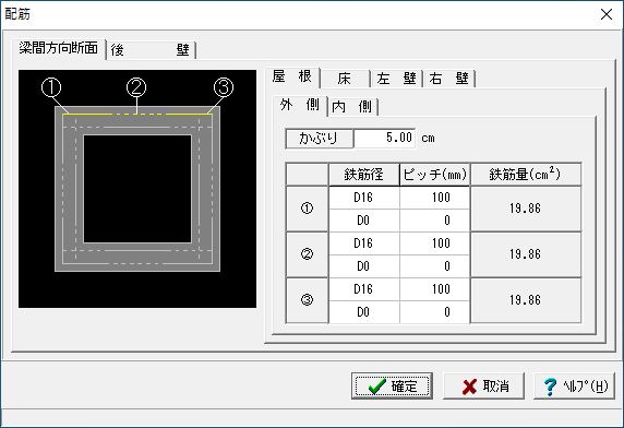 直接、載土による鉛直土圧を入力されたい場合は、上記『載土の自動載荷』ではチェックを付けずに「荷重」画面→「屋根(上部建物)」→「屋根の積載荷重」で入力してください。