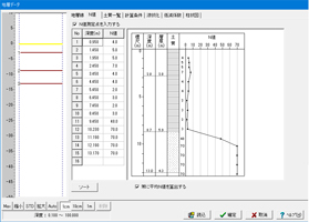 地層データ入力画面にN値測定点及び地盤柱状図の機能を追加します。ボーリングデータのN値測定点をそのまま入力する事で、設計に用いる平均N値を算出する事が可能になります。