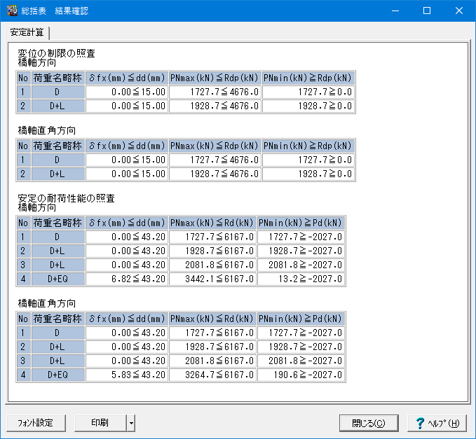一方、耐荷性能の照査の前提として、基礎の変位の照査も規定されました。具体的には永続作用支配状況に対して、従来の常時相当の設計も満足するように設計する必要がありますが、この照査にも対応します。また、支持力係数の自動算定にも対応します。