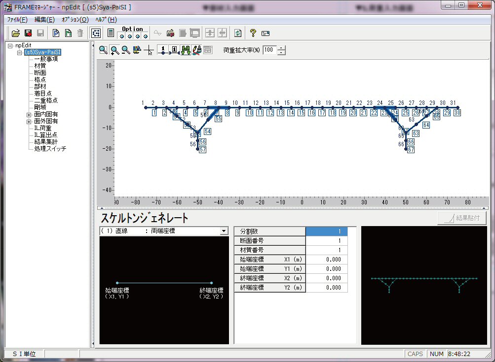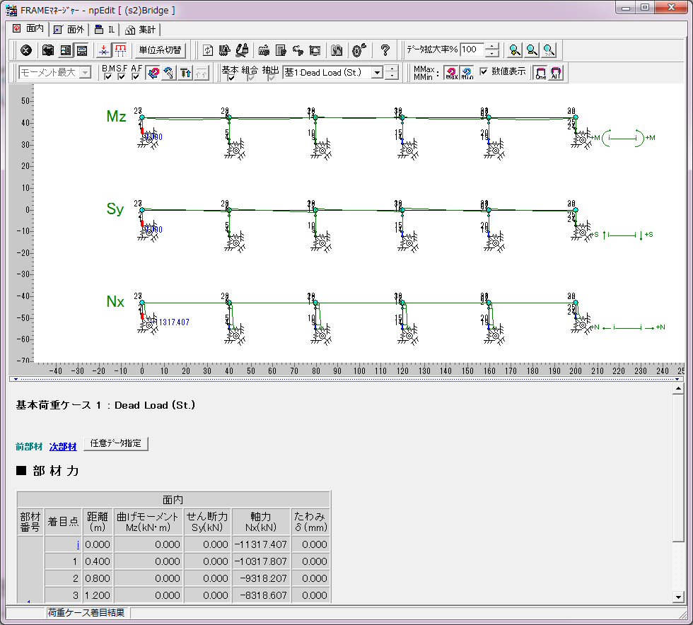 FRAMEマネージャは平面骨組みモデル化された任意構造物の断面力、反力、変位を算出するための構造解析プログラムです。
