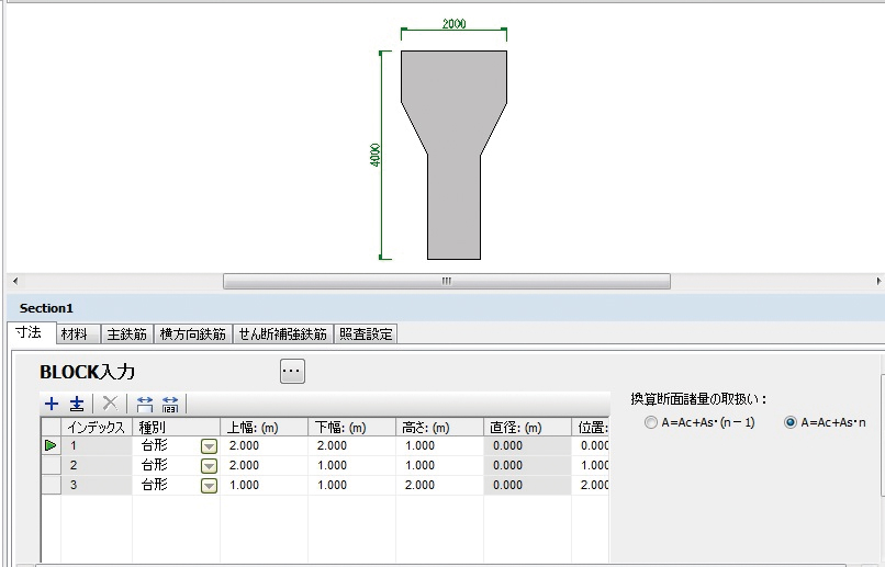| Asminの準拠基準 | 道示III、道示IV、建設省標準設計、bd(有効断面積)、Ac(コンクリート断面積)から選択します。 |