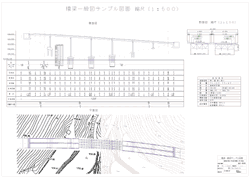 橋面工、杭基礎、支承箱抜図、沓座面詳細図、鋼橋脚用部品、平面線形、縦断線形 | |