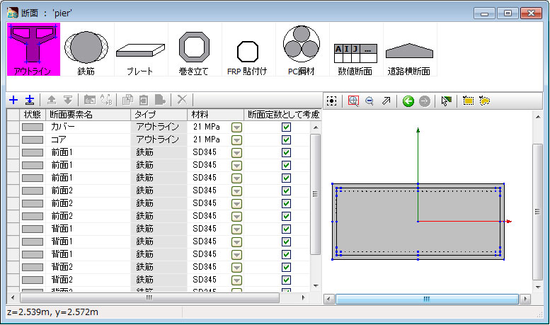 また、断面照査ではコンクリート標準示方書の限界状態設計法にも対応しており、構造物の照査まで可能です。