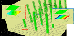 ステップの進行に従い、変位とひび割れ状況を表示することができます。橋梁床版のプレートモデル解析、基礎底版のプレートモデル化解析、地下の壁構造物など様々なモデル化を支援します。