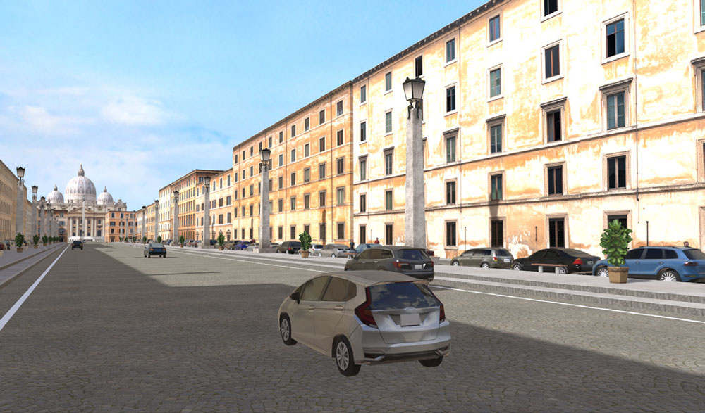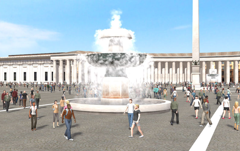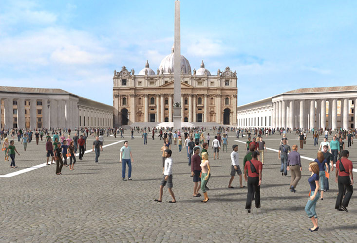 バチカン市国は、イタリアの首都ローマの中にある、世界で最も小さい独立国家です。1929年のラテラノ条約によって成立し、カトリックの中心地として知られています。国家元首はローマ教皇であり、約14億人の信者を持つカトリック教会の本拠地です。国土面積は約0.44平方キロメートルで、人口は約800人です。 国内には、教皇が儀式を行うサン・ピエトロ大聖堂や、ミケランジェロの天井画で有名なシスティーナ礼拝堂など、重要な宗教・芸術施設があり、世界中から巡礼者や観光客が訪れます。また、独自の郵便制度や通貨、警備組織(スイス衛兵)を持つ主権国家です。 今回の制作では、コンチリアツィオーネ通りからサン・ピエトロ大聖堂周辺を再現しました。PBRを使用してレンダリングを行い、サン・ピエトロ広場の群衆は歩行者ネットワークで表現しています。また、噴水は煙機能を用いて水の流れを表現しています。 |