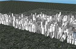 - また、領域をオブジェクトで満たすことが可能です。この機能により、たとえば樹木による森の生成などができます。付属物は、3D飛行ルートを含むすべての道に沿って配置することが可能です。