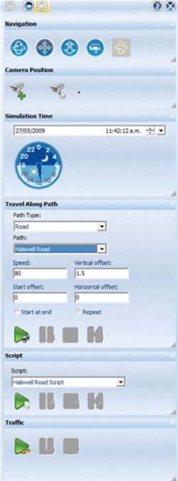 - プロジェクトの全画面表示と、ナビゲーションツール、表示オプション、シミュレーション機能などにも直接アクセスでるシミュレーションパネルの機能を搭載しています。