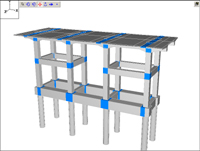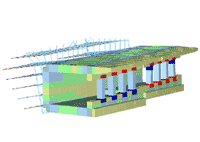 | 杭基礎橋脚モデルの解析。群杭をファイバーモデルで設定し、プッシュオーバー解析を行っている。 |