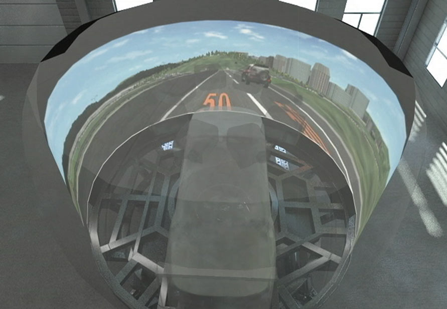 360度ドーム型のスクリーンを利用したシミュレータや会議室、指令室のシミュレーションなどに使用できます。