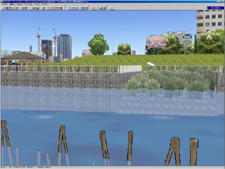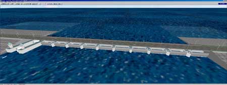 | UC-win/Roadを中核とした3次元Visualizationシステムのパイロットプロジェクトとして、適用予定のSAEMANGUM干拓事業地区のSinsi排水閘門(魚道、通船門含む)及び眺望台をVRデータとして作成。現時点ではパース図をベースにVR化を図ったデータを紹介。 |