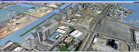| 港湾局港湾整備部技術管理課では、臨海副都心内の「有明北地区」に建設が予定されている「有明親水海浜公園(仮称)」構想の3次元VRを作成。現在、埋立造成中の水際線に位置する海上公園で、特に護岸部に注視したデータ、モデルを紹介する。 |