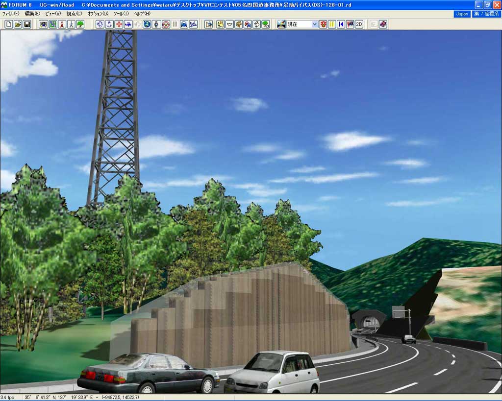 そのアクセス方法について、UC-win/Roadを利用したVRが活躍した。同社HPにおける出口ルート表示、走行ムービーでの案内や説明会で本VRシミュレーションモデルが活用された。