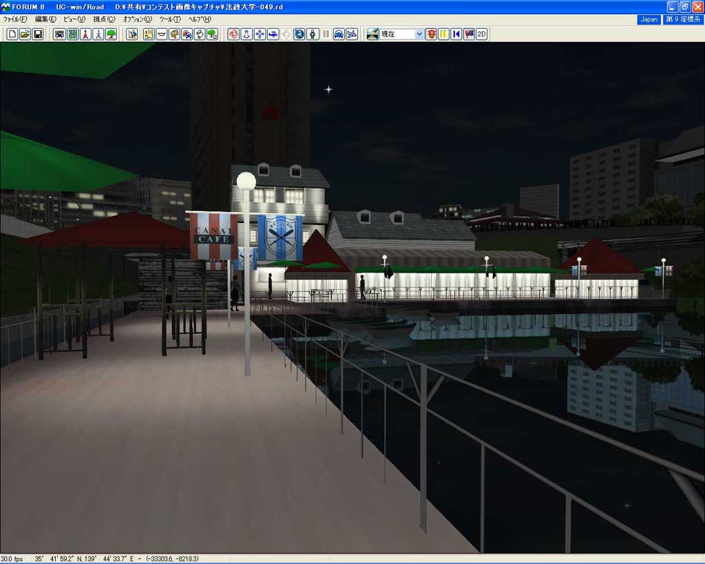 デザイン工学部の市ヶ谷展開に併せて外濠及び周辺地域を持続可能で個性豊かに蘇らせるために、<エコロジー>と<歴史>の観点から研究を行っている。この中で外濠を中心に高精度なVRデータを作成し、同大の校歌にある「蛍集めむ門の外濠」を再生シンボルとして復活を目指したVRを作成した。学部の広報面でも広く活用すると共に、教材としての利用も考えている。 |