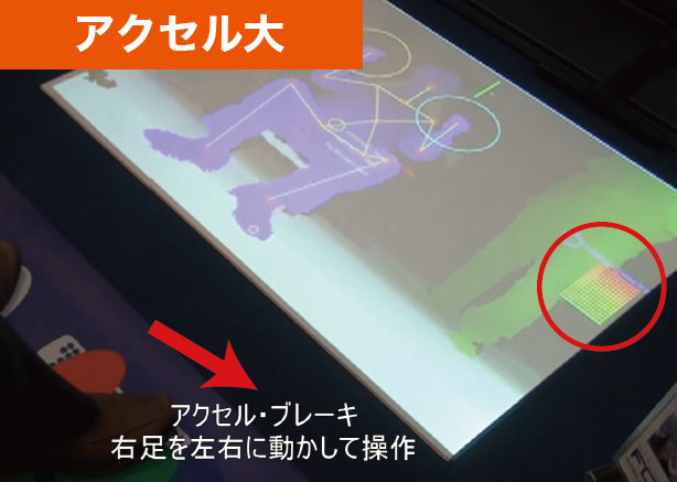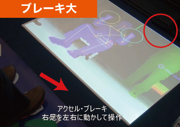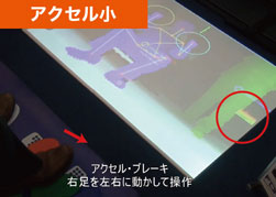 アクセル、ブレーキの操作はKinect™から両手までの距離を基に求めており、ニュートラル状態から前後に動かすことで操作する。