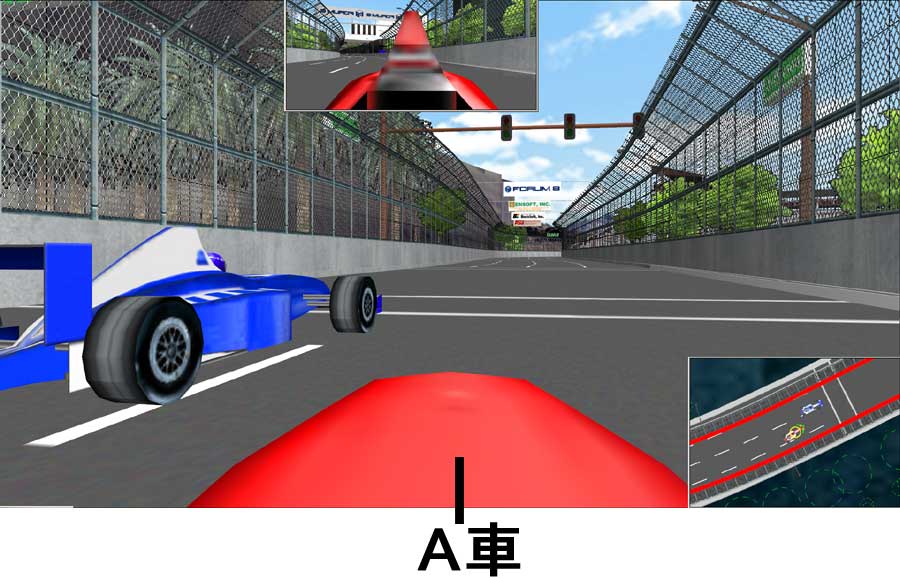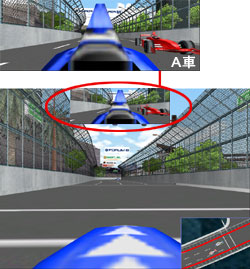 たとえば、UC-win/Roadで作成したサーキットコースを、Web/LANを介して、レースゲームとして楽しむことも可能です。