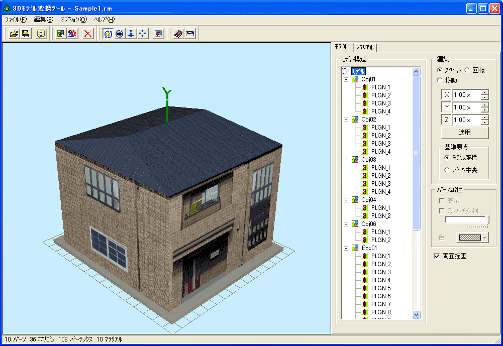 本プログラムは、土木構造物に応じたパラメータ入力を行うことにより、3Dモデルを生成し、3DStudio ファイル(*.3ds)へ出力するプログラムです。