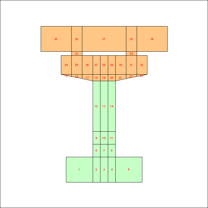 | Element Number | Material | Material X-direction | Material Y-direction | Reinforcing ratio X | Reinforcing ratio Y | Angle between X-axis of element and X-axis of steel bar (degree) |
