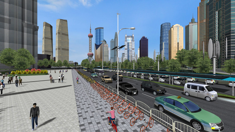 15s"를 실행하면 상하이 시가를 표현한 데이터의 개요와 테마가 된 셰어링제의 모습을 15초 동안 볼 수