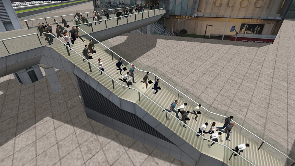 EXODUS에서 해석한 군중 대피 등의 표현이 읽히고 있어 경관 시점을 바꿈으로써 각 볼 수 있고, 전술한 스크립트나 한 사례가