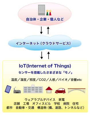 モノをインターネットに接続するためには、その情報を収集するためのセンサー、送信に必要な無線の通信機器、情報を集積して分析するためのクラウド基盤などといった技術が必要となります。現在、末端の機器で利用できるような低消費電力のセンサーが、続々と登場したり、最新のBluetooth 4.1にIPv6専用チャンネルが用意されるなど、IoTを実現するための技術や環境が着々と準備されています。
