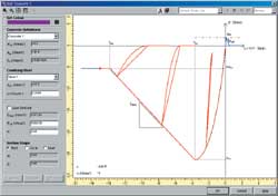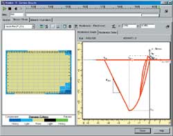 ファイバー要素は、応答ひずみによる損傷判定が可能です。(図5)。変形図をソリッド表示することも可能です(図4)。線形解析においては、複数荷重ケースから最大・最小断面力が生じる荷重ケースの抽出が可能です(図6)。また、標準出力ライブラリF8-PPFに対応し、目次(しおり)付計算書の自動作成およびそのMS-Word形式出力に対応しています。