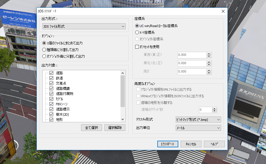 3dsエクスポートウィンドウが表示されます。高度なオプションからテクスチャ形式をPNG形式(*.png)に変更してください。デフォルトはビットマップ形式(*.bmp)です。