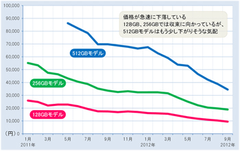 | ▲図1 容量別SSD販売価格の推移 |