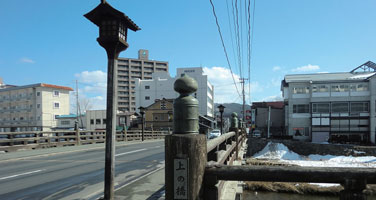 南部藩主の南部信直が青森から盛岡に本拠を移し、築城を始めた時、要塞の地には架橋は必須条件であった。中津川に架けられた当橋はその一つである。 建設は寛文5年(1665年)で、その折擬宝珠が付けられ、今日まで大切に引き継がれている。そんな由来で市の文化遺産に指定され、更には岡本かの子が詠ったようにそれが似合う街である。是非とも訪ねてみたい橋である。