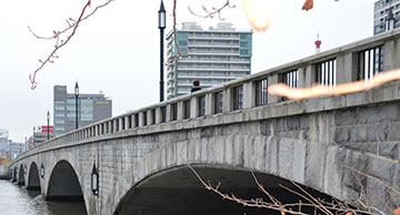 信濃川の河口に架かる本橋は、アーチの美しさと石の持つ重厚感から新潟県・新潟市のシンボルと親しまれている。現橋は3代目で昭和4年に完成し、平成14年に土木遺産に、平成16年に重要文化財に指定された。