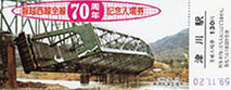 初代越路橋は鉄道用橋梁を拡幅、道路橋に改造されたものであるが、平成10年の現橋開通にともない撤去され、橋名板、橋歴板とともに一部が「越路河川公園」に移設、保存されている。傍らに設置された子供たちの10年後の思いを託したタイムカプセルの「未来への架け橋」の碑が眩しい。