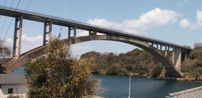 本橋は東松浦郡鎮西町と玄海町との境界にある外津浦に世界で初めてとなるトラス張出し工法によって造られた。アーチ支間170mは建設当時は国内最長であり、今後の橋梁技術の発展に寄与するものとして土木学会の「田中賞」、全日本建設技術協会「全建賞」を受賞している。眼下に拡がる外津浦ではハマチ・タイの養殖のほか釣堀も楽しめる。