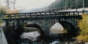 堅磐橋は二連の石造アーチ橋で、現在は使用されていない。川口のめがね橋と愛称され、親しまれている。中山橋は現在も立派な現役橋である。