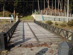 地元では高田の一本橋と呼ばれている。流れ橋のため橋脚に橋板を載せる簡単なものだが、橋板1枚の大きさは長さ8m、幅が80cm計12枚使用され、すれ違いの場としてジグザグ状に橋板が重なるように作られている。両岸から6枚ずつワイヤーロープで繋がれている。