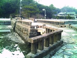 紀の川砂岩製高欄付の三断橋。県内最古の石の桁橋で、妹背山を整備した慶安期に建造したものである。3つに分かれ三つ橋とも呼ばれている。橋の上の高欄には装飾があり、築堤上もそれに合わせて高欄が連なっている。欄干、板石、橋桁、橋脚などは中国有数の景勝地「西湖」を模したものといわれている。何度となく補修されているが、橋の原型は4世紀にわたって崩されることなく、継承され続けている。3径間桁橋(1649年竣工)。